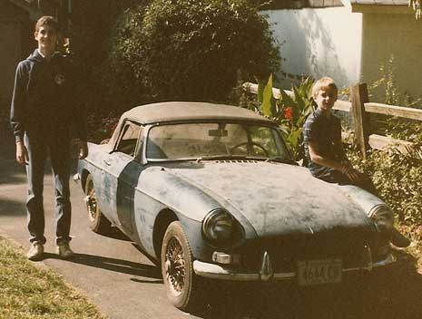 Dave Tobin, and his brother Sean with a derelict 1967 MG B their father pulled out of a garage in Terrace Park, OH, circa 1985.